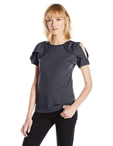 Details: Brandnameinternal|brandnameinternal little twist to your basic jerseys with this short sleeve top with ruffle details brandnameinternalnd open shoulders.