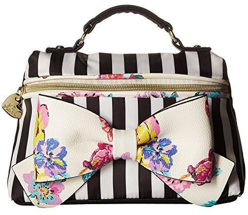 - Floral Over-sized bow with complementing stripe design on body of handbag