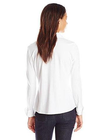 • Long-sleeve blouse with spread collar and button-front placket