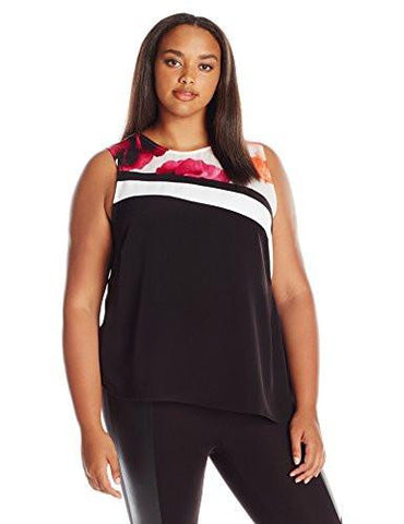 Details: Sleeveless blouse with asymmetrical hem and print top