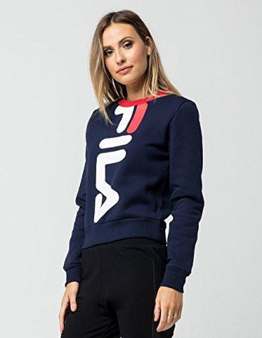 Details: Fila Mona crop sweatshirt. Old school vibes in this fleece classic. Features a Fila logo screened down the front with a contrast crew neck. Rib cuff long sleeves and crop hem. 80% cotton/20% polyester. Machine wash. Imported.Model is wearing a size small. Model measurements:Height: 5'9"Bust: 32"Waist: 23"Hips: 34"