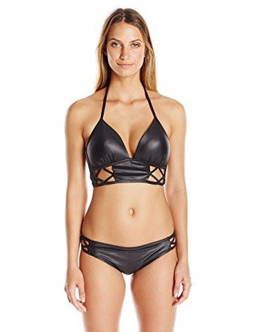 Details: After midnight solid care leatherette push up lace side midkini bikini bra top