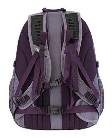 Details: PURPLE SAGE. Womens backpack. FlexVent front panel. Hydration port. Large exterior mesh slip pockets. Fits most 15" laptops. Side compression straps. Side release buckle closure. Two-way zip closures. Women's specific injection-molded with padded shoulders. 420-denier nylon fabric. 17" x 14" x 4"