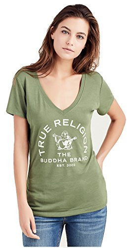 Details: True Religion Women's Arch Buddha Deep V Neck Tee T-Shirt.