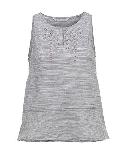 Details: Our outside air eco rich tank has cute, feminine details such as detailed embroidery work, an eyelid clasp with keyhole, and a bias cut bottom hem.