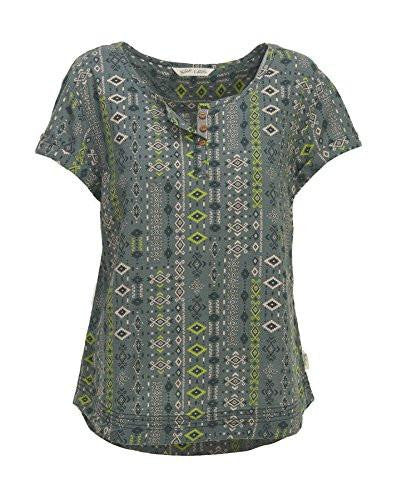 Details: Our twin pines eco rich shirt is made with 100 percent organic cotton dobby. Featuring a shirt tail hem, trapunto stitching, 3 button placket, and rich colored prints. Center back length: 27 inch