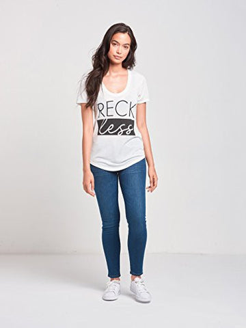 - Step out on the scene in one of our signature Reckless Girls tees. Featuring a deep scoop neck, it's time to let the sun rays hit your skin. Loose silhouette provides a comfortable yet secure fit. Finished with a diverse Reckless logo on the front, making it one-of-a-kind. All-white color goes perfect with your favorite pair of leggings or denim jeans.Size & FitTrue to size.Model is 5'8".She is wearing a size X-Small