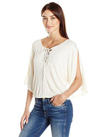 Details: Gioannia textured knit slit sleeve blouse with lace up front detail